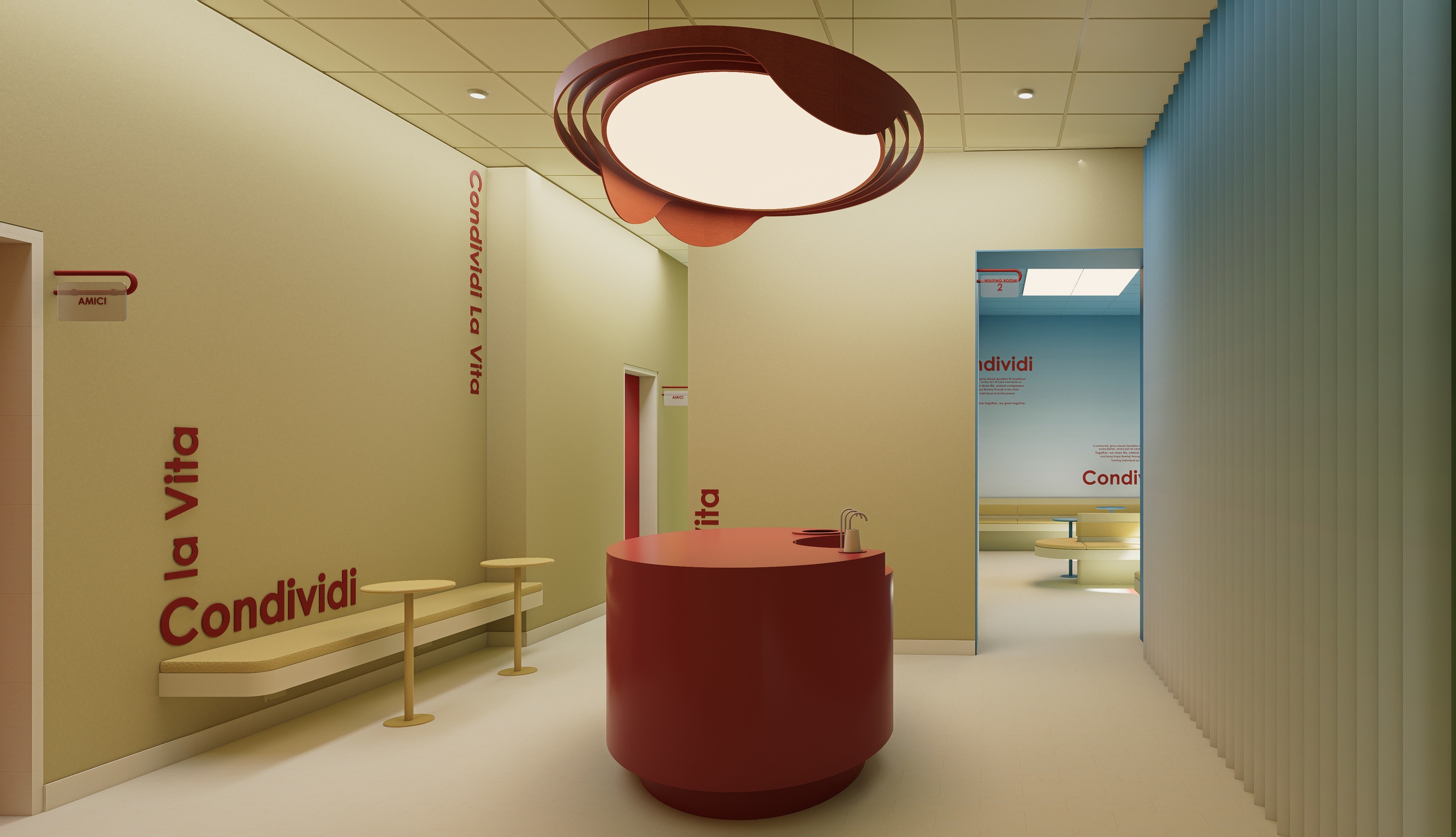 The spatial concept takes inspiration from blood- its diversity, its colors, and its constant movement. Instead of a single red, we draw from the many hues and forms within blood to build an inclusive, layered palette.