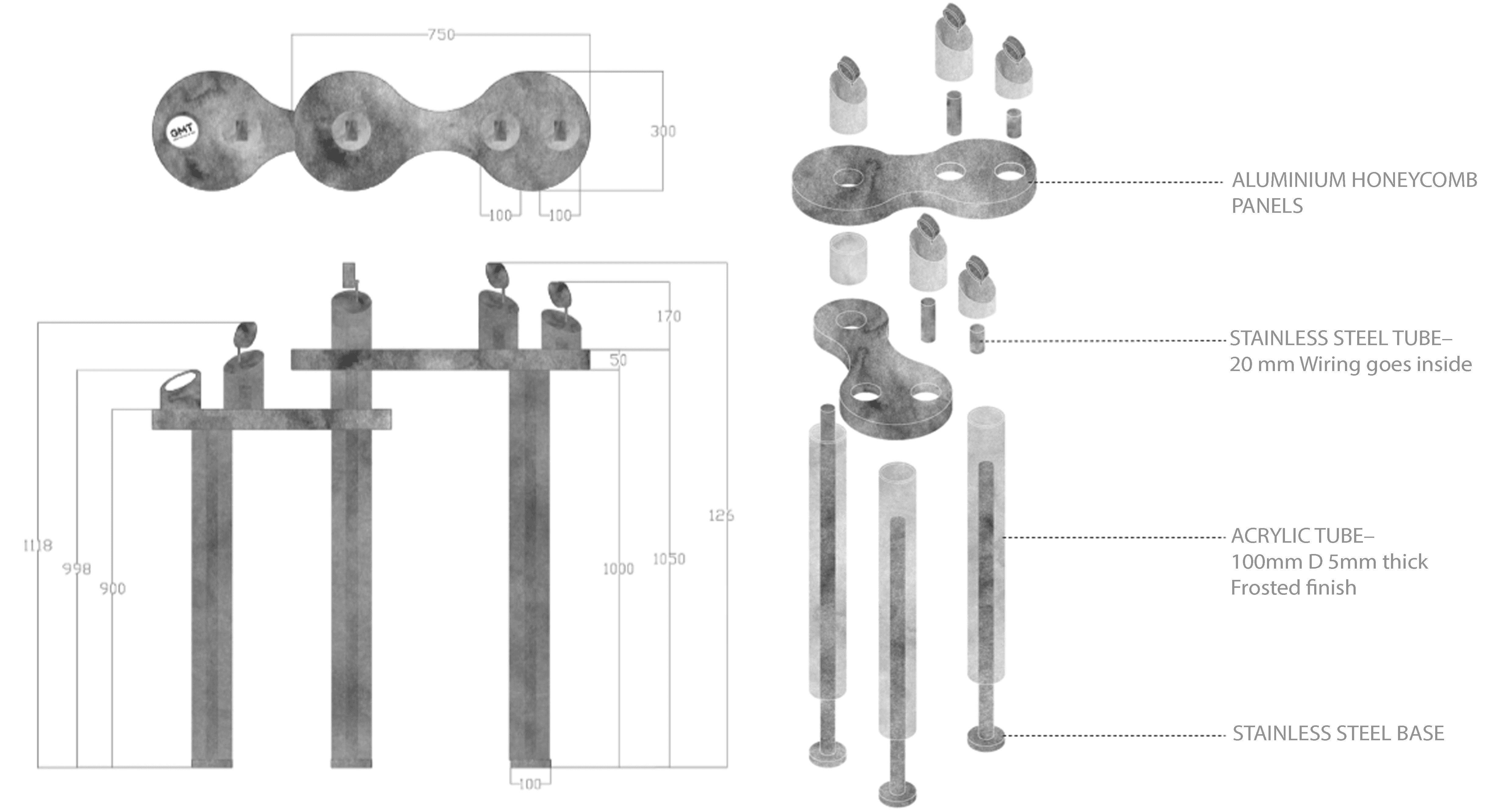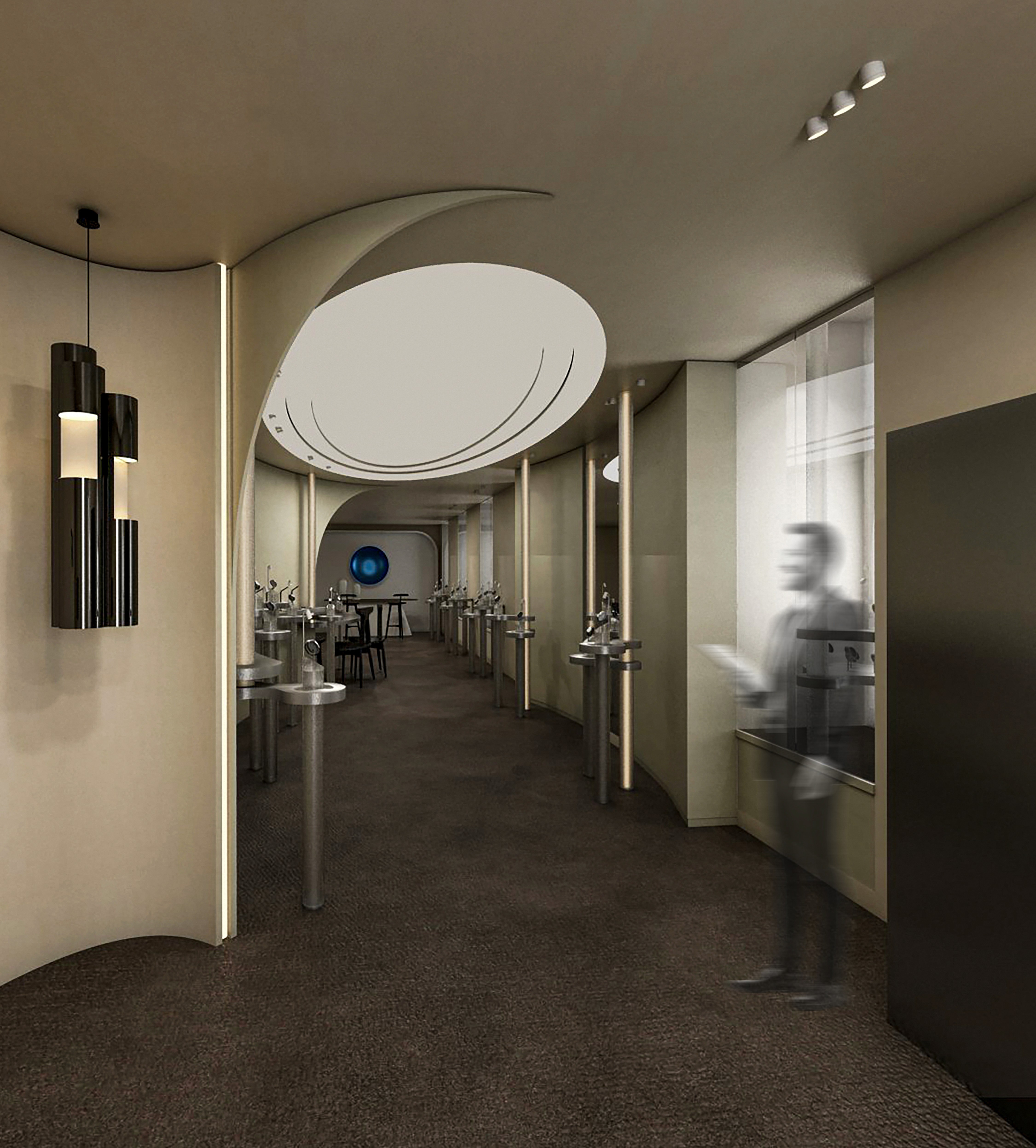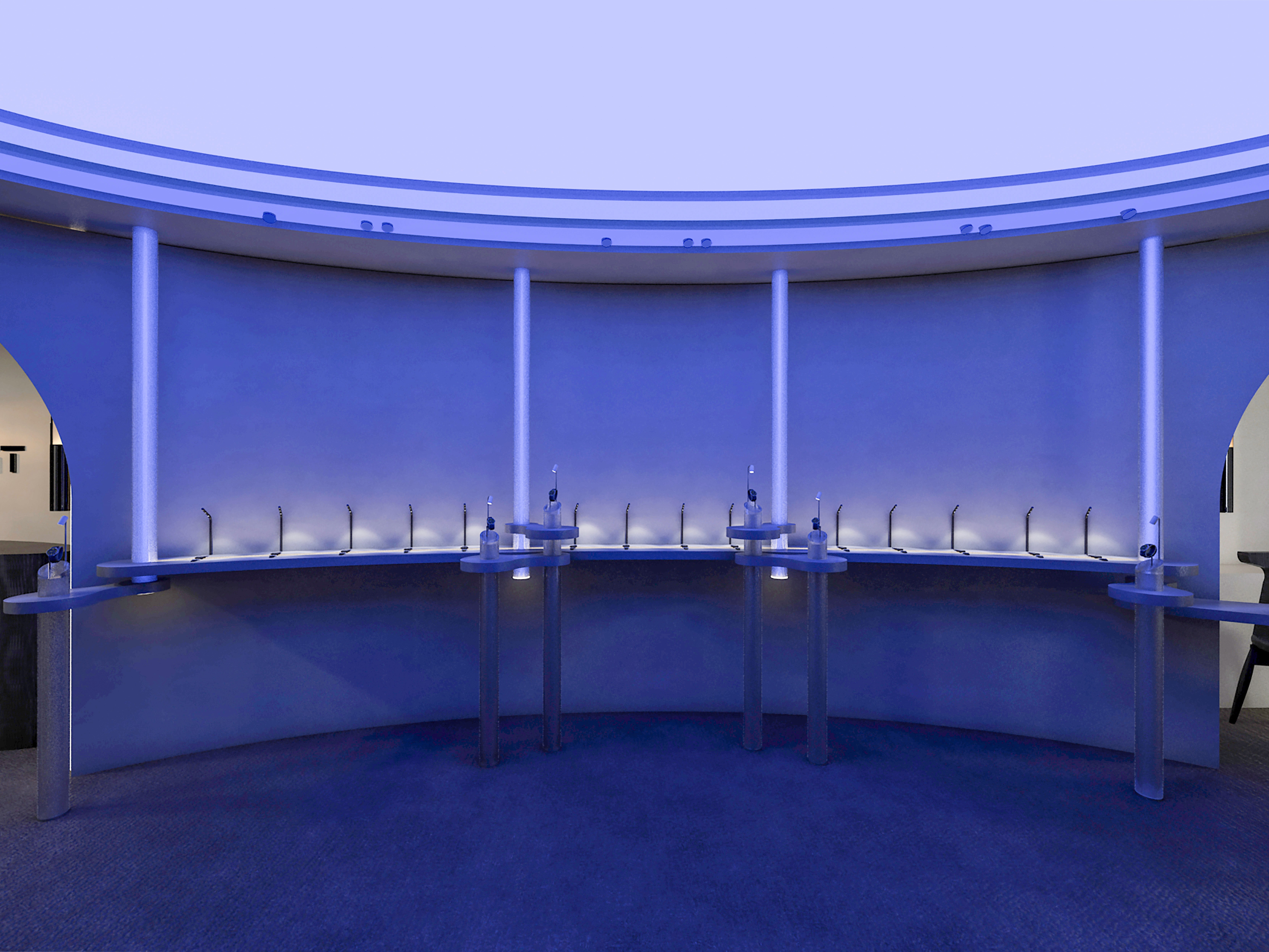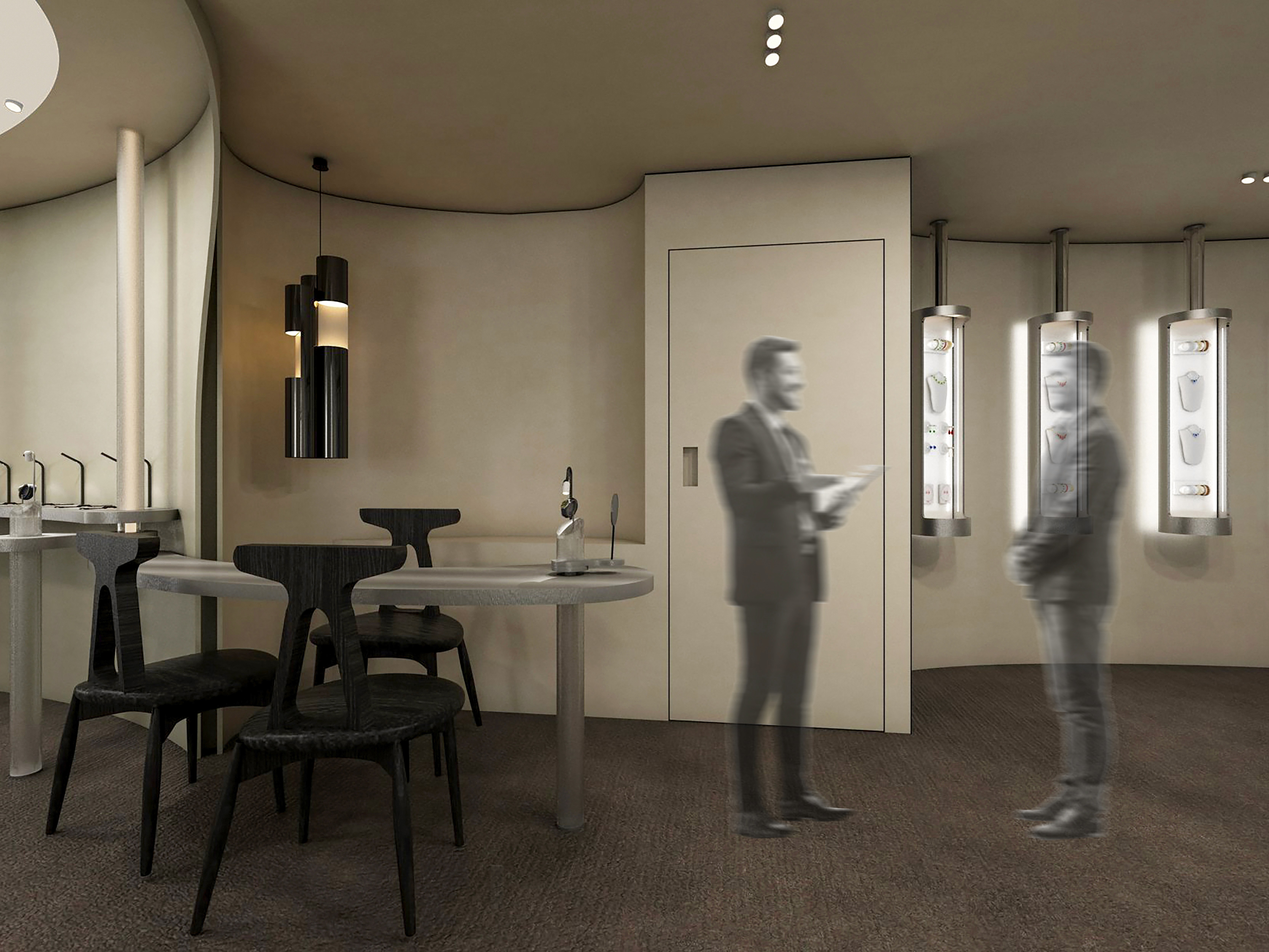 We drew direct inspiration from the avant-garde and otherworldly watches curated by the store, using them as the starting point for planning the space.
