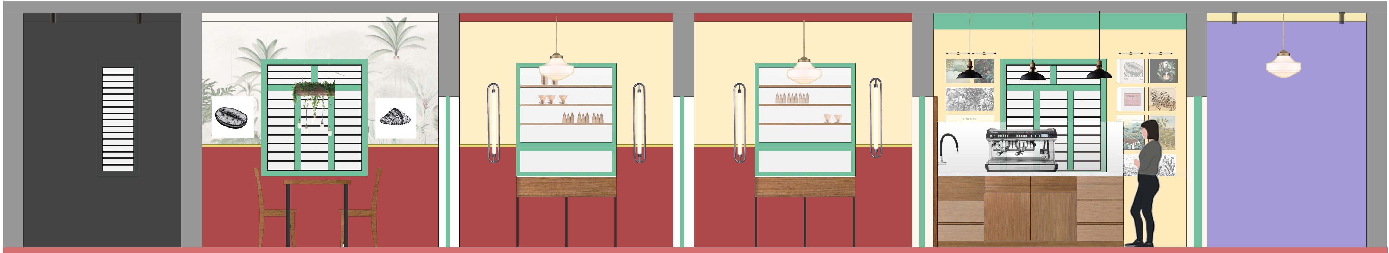 Doorways were expanded to create an easy, welcoming flow for the café experience.